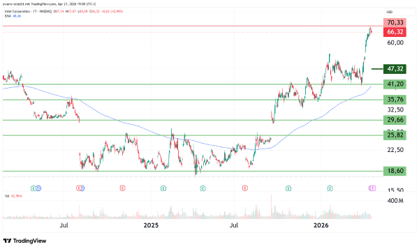 Am 17. April 2026 konnte der Kurs von Intel sogar ein neues Allzeithoch von 70,33 US-Dollar erreicht.