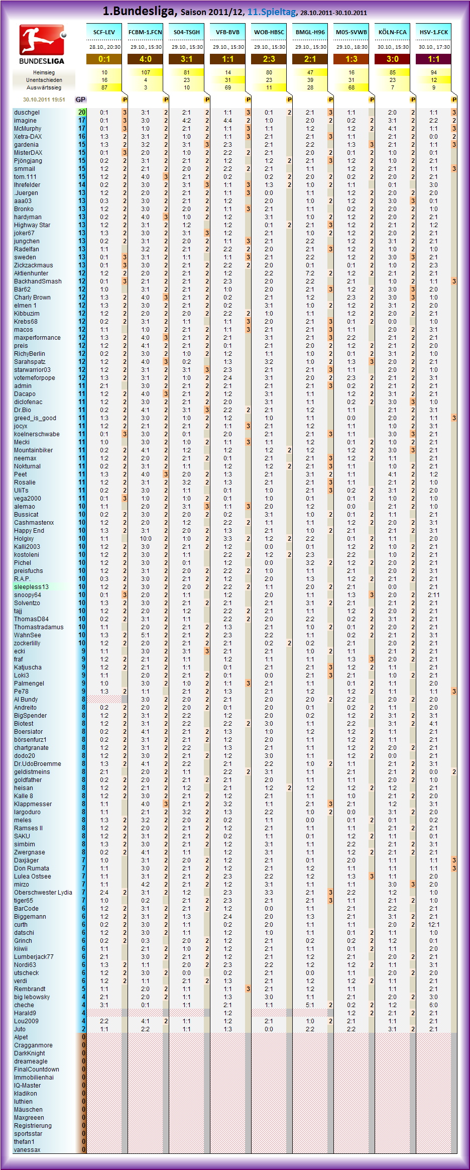 in der Ewigen Tabelle ist alles drinne was ihr seit fast 10 Jahren getippt habt.. Hab doch damals, wo ich damit angefangen hab, alles, aber auch alles zusammengesucht.. ;o)
