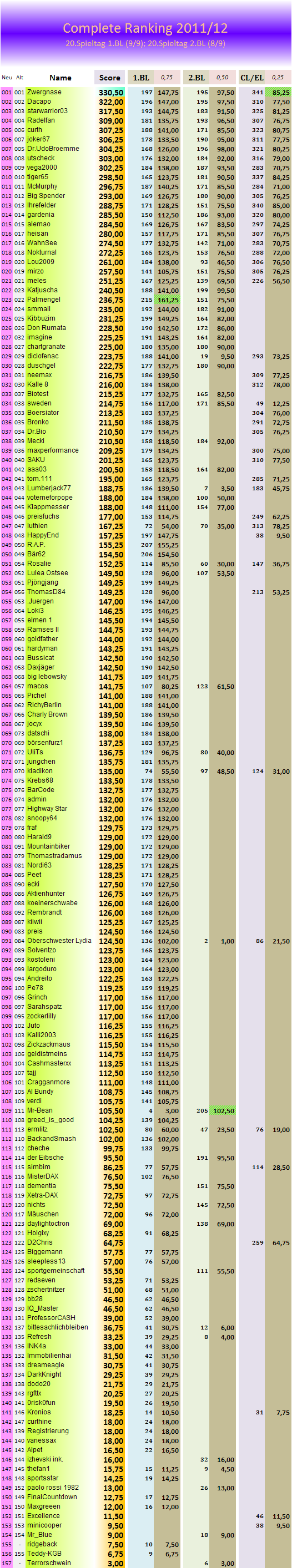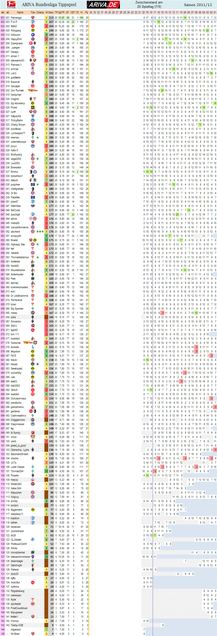 1.Bundesliga, Spieltag 20