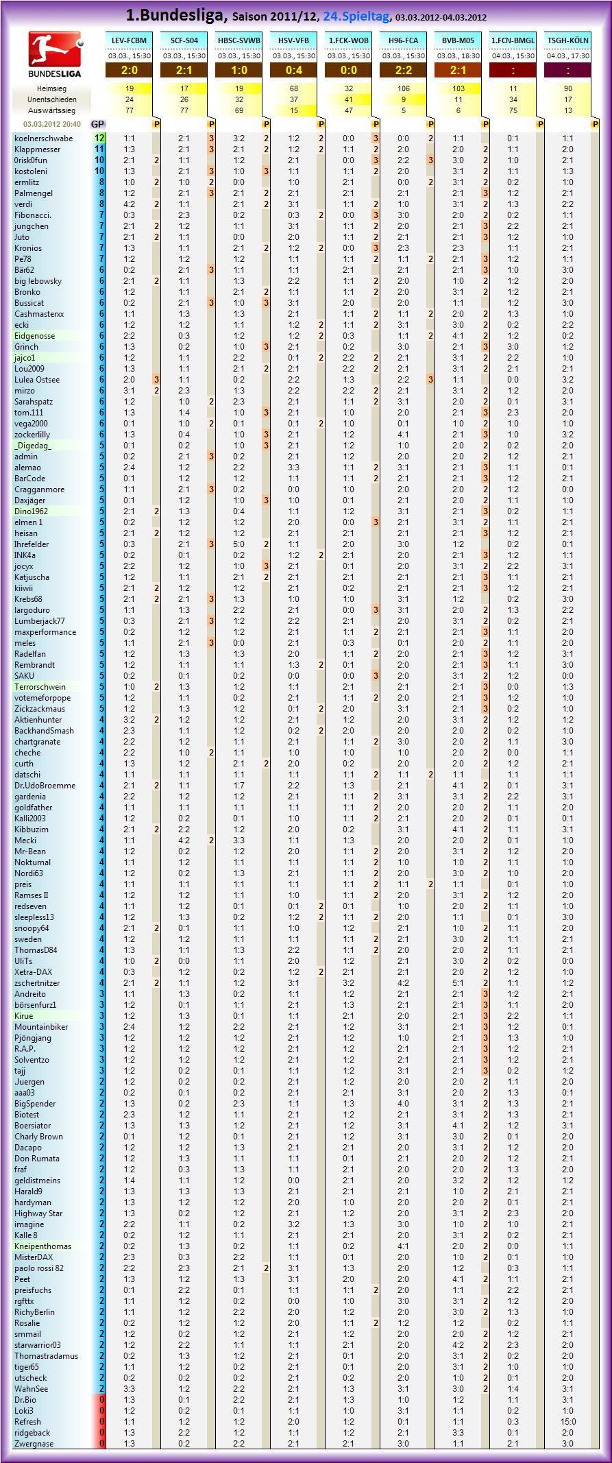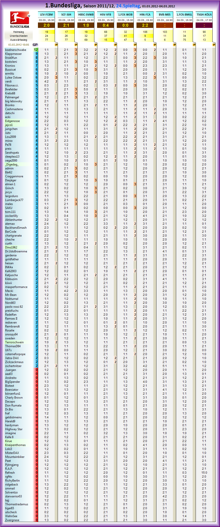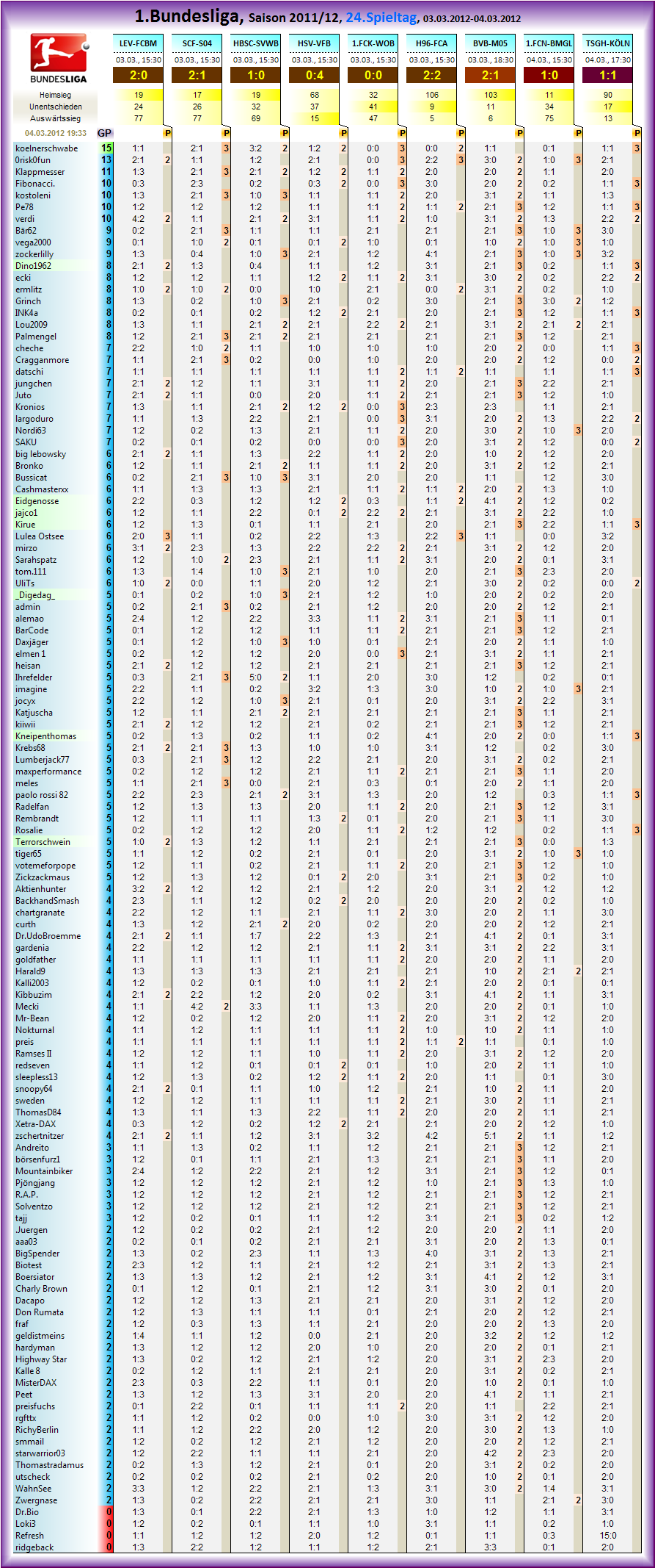 Allgemein war es ein schwacher, sehr schwacher Tipperspieltag, dazu dann mehr im Statistikblock.. |