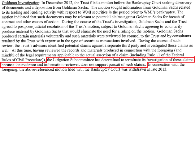 Das würde bedeuten, dass WMI zu Recht pleite gegangen ist, dass niemand sich bereichert hat und niemand nachgeholfen hat!