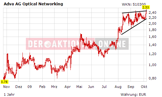 Die Aktie wurde wie in der letzten Rezession gnadenlos abverkauft. Adva ist eine klassische Turnaroundchance vor dem Hintergrund der anziehenden Investitionstätigkeit.
