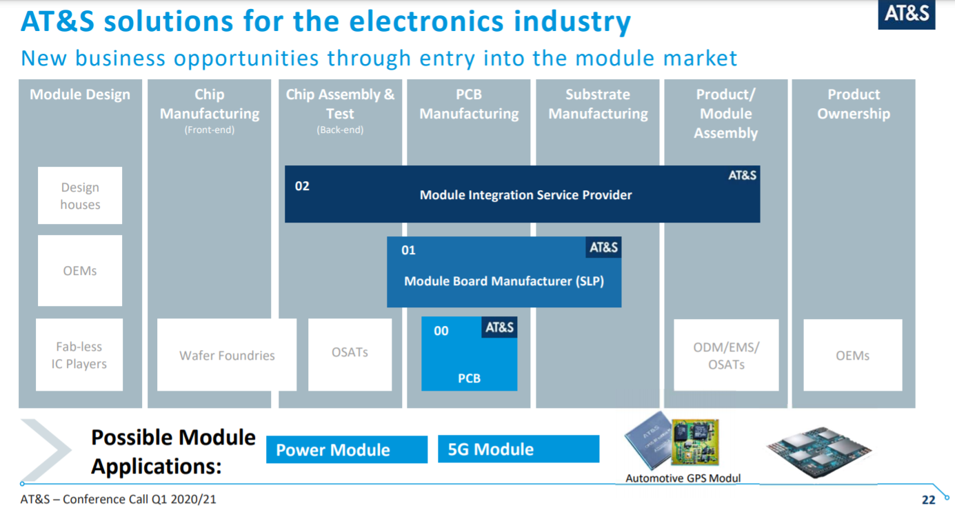 AT&S bekommt nun die Fremdkomponenten geliefert und baut daraus - zusammen mit den selbst hergestellten Leiterbahnen und Substraten - das Modul.