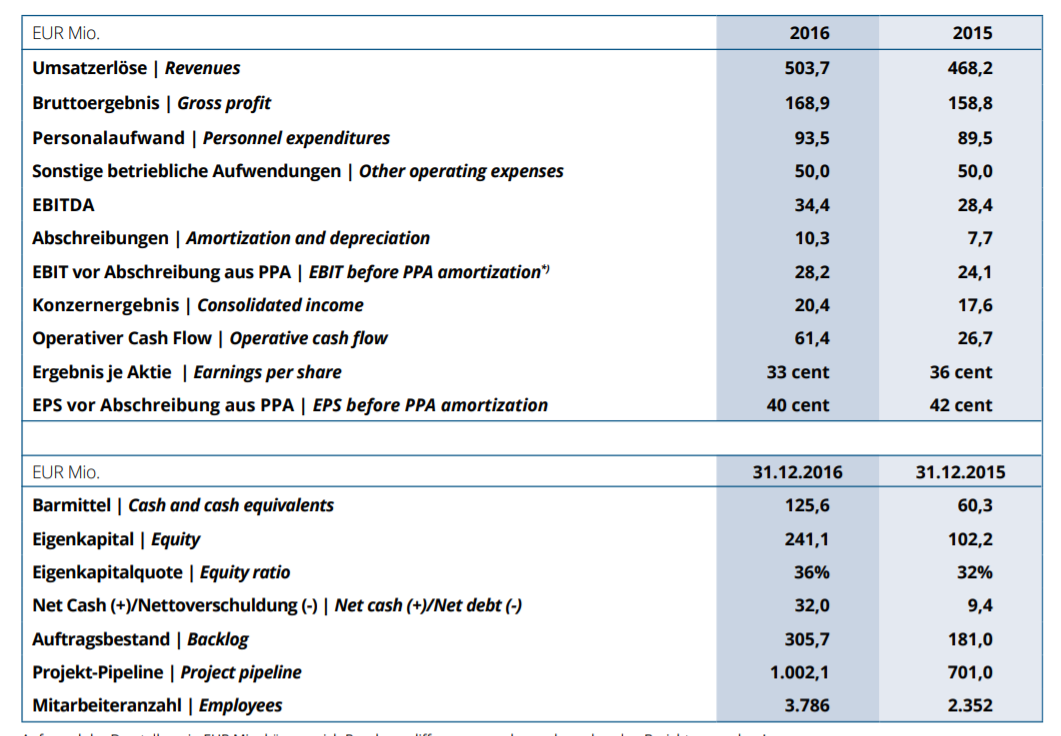 Schaut man sich die wichtigen Kennzahlen der S&T aus den Jahren 2015 und 2016 an, sieht man, dass das Unternehmen vor dem Wechsel in den TecDax bereits recht ansprechend bewertet war. KUV deutlich über 1, KGV von 30 usw.