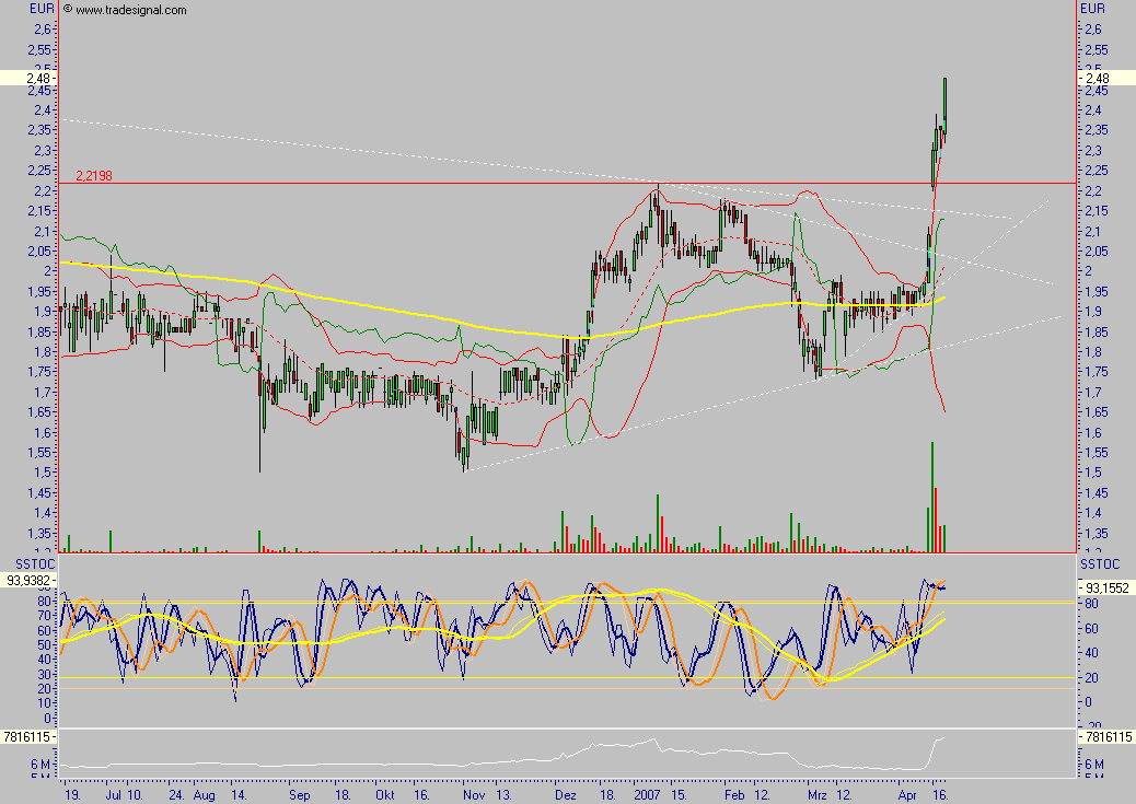Advanced Medien niemand weiß was da vorgeht bezüglich der hohen Umsätze. In den letzten 4 Tagen seit Veröffentlichung der Zahlen wurden jetzt 2,5 Mio Aktien gehandelt. Vor wenigen Wochen gab es rund um das ARP auch schon extrem hohe Umsätze, wo in den 4-5 Wochen deutlich mehr als 2,5 Mio Aktien gehandelt wurden.