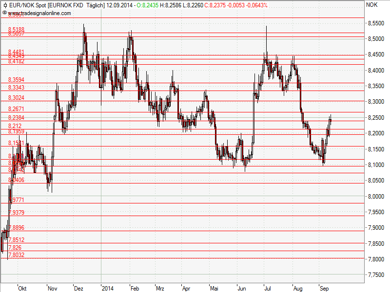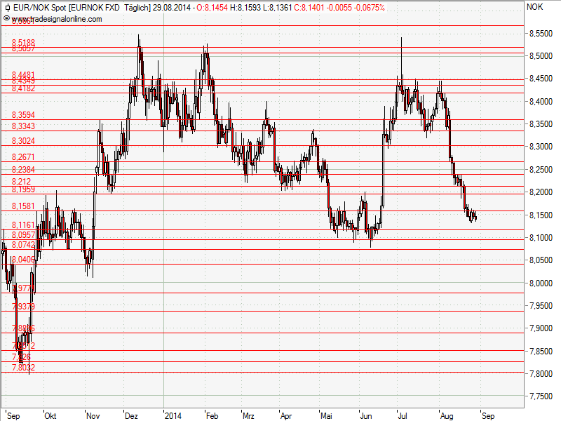 Das ist ärgerlich und da ist mir beim Blick auf den EUR-NOK-Chart der Gedanke gekommen, dass hier scheinbar ein ziemlich volatiles Währungspaar vorliegt, dass ich m a x i m a l gestaffelt tradingmäßig v a m p i r i s i e r e n könnte, denn jetzt sind es schon 6.500 € die in Norwegische Krone umgetauscht wurden, was also bis zu 65 Staffelpositionen zu 100 € EUR-NOK-Long-CFDs wären und so könnte ich die magere Staatsanleihen-Rendite von nur 2,3% etwas aufpeppen und wenn der D r e c k s – Euro dann wirklich zu seinem finalen Absturz bis auf N u l l ansetzt, werden die EUR-NOK-Long-CFDs per Not-Stop-Loss aufgelöst, aber bis dahin kann ich auf der Longseite sicher noch ein paar nette Vampirisierungsgewinne einfahren !!!