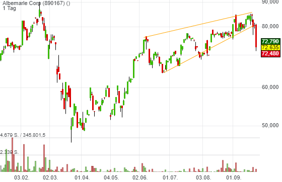 eine solide Firma, denke ich, die Frage ist aber zu welchem Preis? Jetzt muss sich der Boden ausbilden, dann sehen wir weiter. Der Preis für Lithium soll steigen, wenn alle mit Elektroautos durch die Gegend fahren. Aber Lithium ist nicht das einzige Produkt bei Albemarle. Ob Preissteigerung bei Lithium (sollte diese tatsächlich einträten) zu einer signifikanten Gewinnsteigerung bei Albemarle führen wird, kann ich heute nicht beurteilen. |