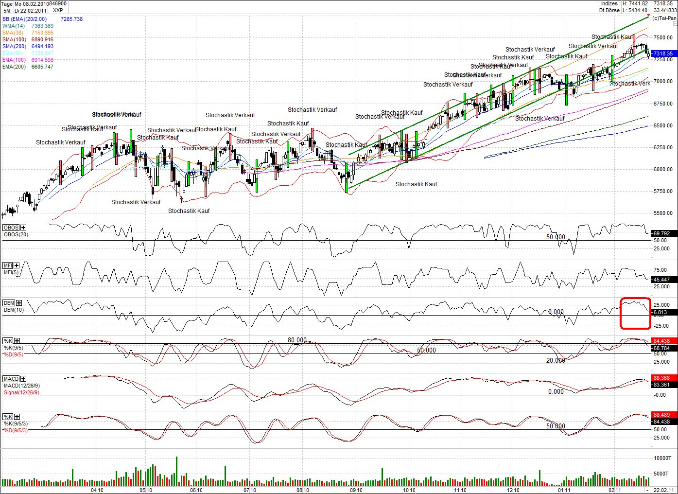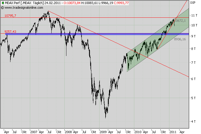Also: Ob es kurzfristig zur Korrektur kommt müssen wir sehen; Libyen kann, muss aber nicht der Auslöser sein, zumal das mittelfristige Sentiment lt. Sentix noch exzellent ist. Mittel- und Langfristig werden damit nur Kaufkurse erreicht, die Hausse wird noch recht lange dauern.