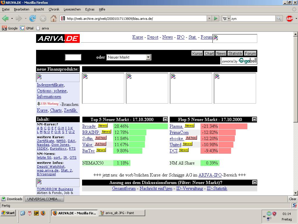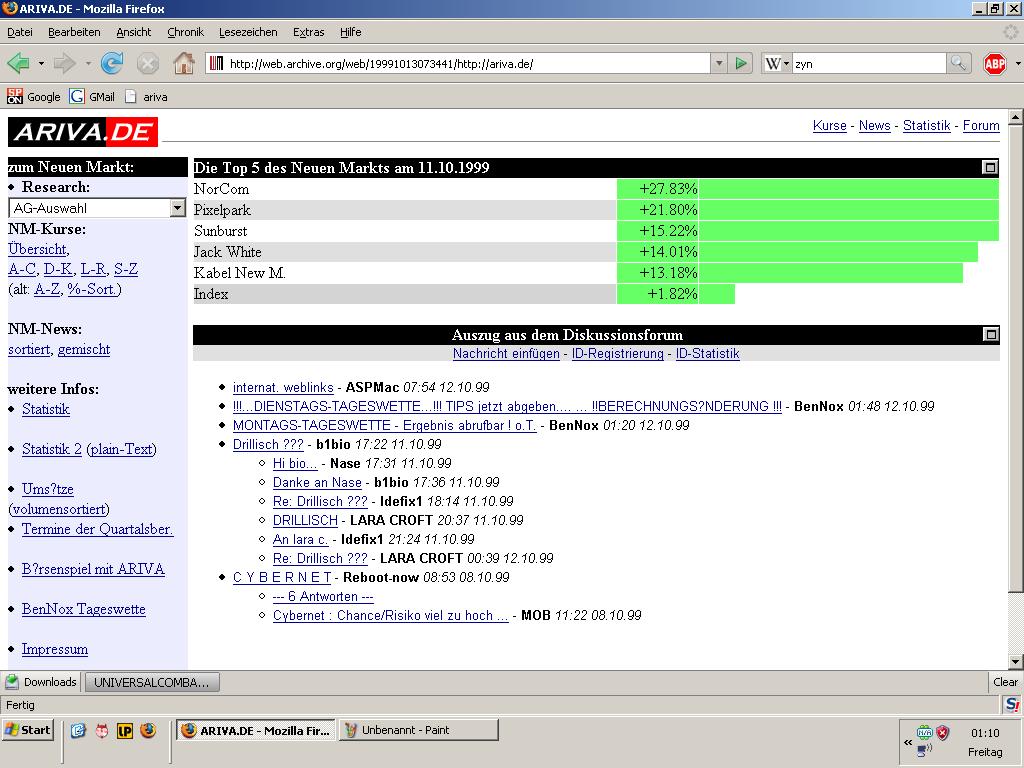 Werde Deinen Thread im Auge behalten, da ich mir hiervon nicht nur größeres Verständnis der Entstehungsgeschichte unserer ARIVA sondern auch etwas Einblick in die jeweiligen ZEITPUNKTE erhoffe, WANN sich wieso welche Fehler in die Chart-Engine eingeschlichen haben, die z.Zt. ein wenig "rumpelt".