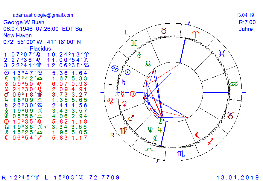 Das radix von Bush ist gewaltig, aber sehr einseitig auf sich und seine Umgebung bezogen, man könnte meinen mit UR/MK in 11. im Kreise der Erleuchteten, aber dennoch, die Zerstörung der Macht erfolgt am besten von Innen und in diese Richtung hat er bereits einiges bewirkt, ob er es wollte oder nicht.
