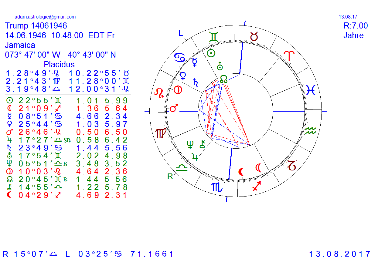 wir sehen also, dass Anfang Juli 1946 diese Konstellation stattfand und das 3.US Präsidenten, Trump,Bush und Clinton, innerhalb von 2 Monaten mit dieser Konstellation geboren wurden, es ist insofern kein Zufall, weil auch der Vierte Obama, ebenfalls mit dieser UR/MK Konj. geboren wurde, jedoch im Zeichen Löwe.