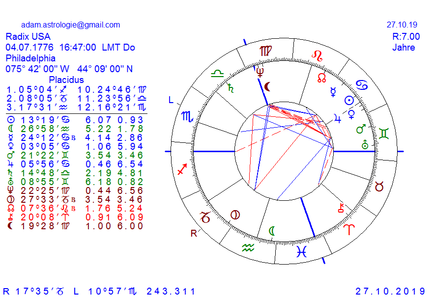 betrachten wir das gründungsradix der usa genau und intim, dann wird aus dem horoskop ein horrorskop und es lichtet sich im grunde darin alles ab, was wir von den usa nicht erwarten können, ein friedlicher und sozial staat, the amercian way of life, Freiheit,Gleichheit und Brüderlichkeit, dies alles ist schon inm Ansatz nicht möglich wenn man das radix genau unter die Lupe nimmt, besonders wenn man es aus esoterisch.geistiger Sicht betrachtet und weiß, dass es sowas wie die Magie der Macht und der geistigen Manipulation gibt, denn dies alles trifft auf dieses radix zu. Das es den usa derzeit wirtschaftlich und finanzell so schlecht ergeht und uns jetzt die Hintergründe offenbar werden, liegt daran dass die derzeitgen Planetentransite dieses Land und sein Gründungshoroskop schwer belastet. In Kürze werde ich einige Faktoren im radix aufzeigen, welche das oben genannte aus astrolog.Sicht begründen. Die erste falsche Flagge zeigt sich durch den abstg.Mondknoten im Wassermann, was dem Zeitgeist des WassermannZeitalter diametral insofern widerspricht, dass ein MK im Löwe die gegenteilige Richtung vorgibt, wie Ausbau und Erhalt der eigenen Interessen, der Macht, der Gründer und deren Freunde , die diesen Weg beschreiten, obwohl sie was anderes vorgeben. Der nächste Punkt, dass es sich um einen von Macht und Magie beseelten Gründerzirkel handelte, sehen wir an der Konj.von NE und Lilith im Zenith, diese Stellung am höchsten Punkt deutet darauf hin, dass deren Verwirklichung und Umsetzung das höchste Ziel ist und die Priorität des radix schlechthin darstellt und diese Stellung zur Gründung bewusst gewählt wurde, jedoch mit dem Gedanken der Schädigung und der Vernichtung, anstatt von Menschlichkeit und Nächstenliebe, die in den Statuten vorgetäuscht werden, diese Stellung heisst nicht Freiheit für Alle, sondern das absolute Gegenteil davon,, steht doch NE im schlechtesten Zeichen, um seine positiven Eigenheiten von Nächtenliebe und Gerechtigkeit umsetzen zu können. In diesem Falle dominiert Lilith das Geschehen, denn sie steht in allen Zeichen gleich stark schlecht, man könnte sie als Bazillus der Intrige und Falschheit bezeichen und sie wird sehr gerne für Hexenjagd und schwarze Magie verwendet, so ist sie auch im radix der usa verankert. Der nächste Punkt der den Himmel verfinstern kann und die Machtgelüste der Proponenten anzeigt, ist SA im 10.Haus, welcher die SO der USA, den Lebenskern, das Lebenslicht im Quadr. verfinstert und dominiert, das ist ein langer und schmerzhafter Prozess, welcher nach Jahrzenten und Generationen, zb wie zur Zeit, durch schlecht Transite, zu einem qualvollem Ende führen kann, was soviel heisst, die USA sollten neu gegründet und auf ein menschliches Fundament gestellt werden, aber so wie es derzeit aussieht, wird es ohne Bürgerkrieg nicht gehen, es sei dem, es kommt ein Präsident der mit dieser Lage konfrontiert wird und der die Macht durch sein Horoskop besitzt, den sogenannten tiefen Staat zu beenden. SO/SA ist immer ein Zeichen von rücksichtslosen Handeln, besonders wenn SA die Dominanz hat, denn achetypisch gesehen ist SA der Energiesauger, der Licht und Lebenslöscher, ein Satan und schwarzes Loch im Sonnensystem. Zwei weitere Beispiele von Macht und Negativität in diesem radix erkennt man durch das Quadr von MA zu NE/Lilith, wobei des Regent des MA der ME in Opp zu PL steht, was soviel heisst, sich durchsetzen zu wollen, mit Magie und Gedankenkraft, Propaganda, mind control und die Herrschaft über die Medien. Über all diese geheimen Aspekte kann eine JU/VE Konj im Kre nicht wegtäuschen, es ist das freundliche und einladene Gesicht nach aussen, da JU Herr des radix ist, aber im 8.Haus geht es nur um Besitz und Verwaltung und den Einfluss des Dollers auf die Wirtschaft und Lebensweise der Menschen auf der ganzen Welt. Dazu kann man jetzt nachträglich als Resümme feststellen, die USA wurde nicht nur gegründet um sich von England zu befreien, der ganze Freiheitskrieg stellt sich nachträglich als fals flag heraus, sie wurde einzig und alleine deswegen gegründet, a) um die Monarchien zu entmachten, b) den Weg zu eigenen Macht zu ebnen um einer Elite zu dienen, c) der WassermannZeitalter Revolution zuvozukommen, sie zu verhindern, sich selbst als Retter und Richter auszugeben um schliesslich langfristig gesehen, selbst die Macht auf diesem Planeten zu übernehmen. Verfolgen Sie die Geschichte, dann sehen sie heute, dass die USA bloss als Vehikel für die Instellation einer NWO verwendet wurde, aber lt.radix wird uns jetzt klar, leider nicht zum Wohle der Menschheit. |