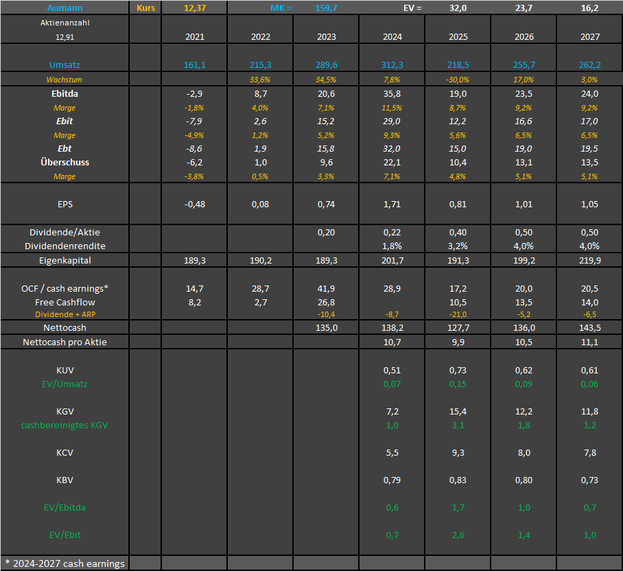 Bei Aumann befürchtete man doch Schlimmeres für 2024 und 2025. Da gibt es jetzt ein klareres Bild. Die Fakten für 2024 sind klar und die Prognosen 2025 besser als gedacht.