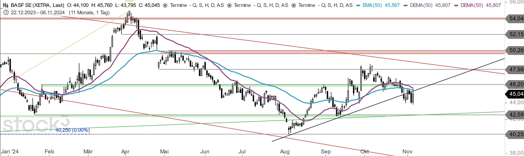 ...jemand auf Falschinformationen reinfällt, trotz der Intraday Kerze ist BASF weiter im bärischen Szenario. Die Unterstützung bei 45,30 € wird jetzt zum Widerstand