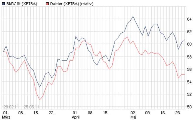 Aktuell Kurse BMW - DAI = 61 - 49 = 12 Euro Unterschied