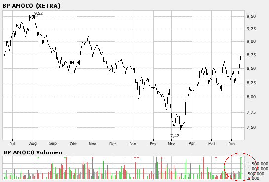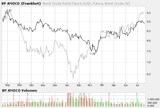 Ein Vergleich der Charts zwischen NordseeRohöl und BP auf Jahressicht ist beigefügt. Allerdings ändert sich das Bild, die Differenz, deutlich beim Wechsel des Zeitrahmens...