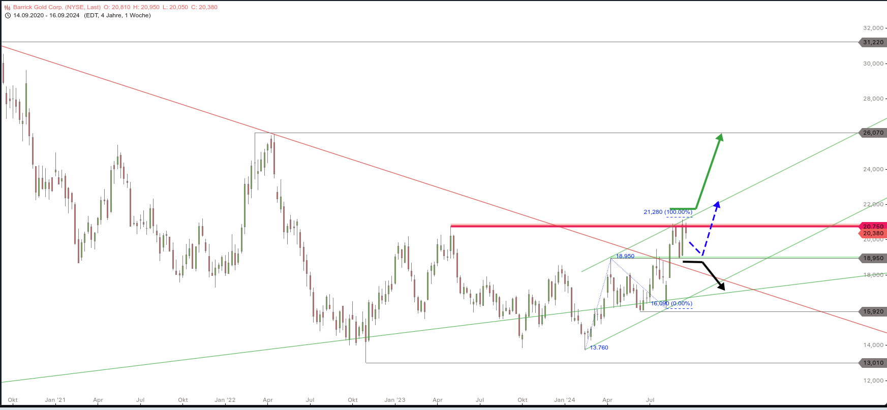Hm, Glückwunsch zu den 25%. Übrigens hätte man bei Kauf im März bis zu 60 % machen können Barrick bleibt bisher trotzdem ein absoluter Underperformer. Jetzt stehen wir bei Gold 2600, Energie ist günstig und die Aktie ist meilenweit von ihren Höchstständen entfernt. Wie oben schon oft erwähnt, die meisten hätten wohl 25-30 Dollar "erwartet". Ich hab mal zum Spaß meine Gold-Aktien (z.T. auch Silber-Gold) verglichen, weil du "dieses Jahr" angesprochen hast: Newmont 51% Agnico 60% Coeur 133% Pan Am 62% Barrick 12.5% GOLD 30%...seit Januar. Ich bin froh, dass Barrick meine kleinste Position ist und ich hier nicht aufgestockt habe. PS Unabhängig vom Einzelwert finde ich interessanter, wann wir (die in o.g. Minen Investierten) aussteigen sollten: Schaut mal den 5 Jahreschart an. Hier geht es noch bis zu einem unbekannten Punkt extrem hoch und dann wieder 60-80% runter. Die Kunst wird sein, diesen Punkt möglichst gut zu erwischen und die tolle Steigerung auch zu versilbern. Stop-loss hilft meist nicht, das kegelt einen nur zu früh raus... |
