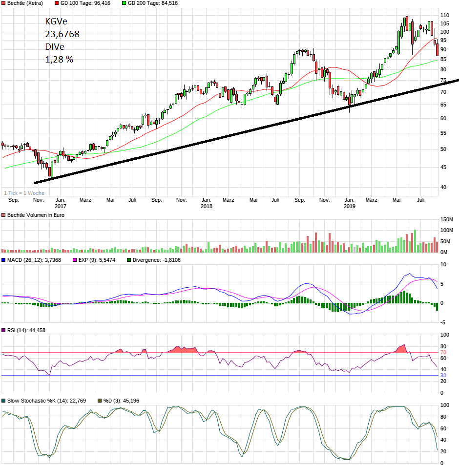 Auch wenn ich nicht auf fallende Aktienkurse wette, so denke ich, dass man Gewinne in der Bechtle Aktie unbedingt realisieren sollte. Der Schmerz eines stärkeren Kursrückgangs bleibt einem so erspart ;-) |