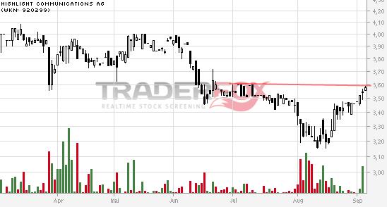 dividende CHF0,17*** = 0,1416 -- 16.01.2015 --> 0,1722 *** = letzte dividende, ausgeschüttet am 10.06.2014 EpS 2014e (lt. guidance vom 07.11.2014): 12-14mio / 44,53mio*** = 0,29 *** Anzahl ausgegebene Aktien: 47.250.000 St. Zum 30.09.2014 hielt die Gesellschaft insgesamt 2.715.650 eigene, nicht stimmberechtigte Aktien, was einem Anteil von 5,75% in Relation zum gezeichneten Kapital entspricht. Nach Abzug dieser Aktien befanden sich rund 44,53 Millionen Aktien im Umlauf. http://www.highlight-communications.ch/Aktiendaten.83.0.html deutlich reduzierte netto(finanz)verschuldung zum 30.09.2014: CHF106,1mio finanzverbindlichkeiten ./. CHF47,2mio liquide mittel = CHF58,9mio nettoverschuldung verschuldungsgrad (debt to equity ratio, gearing) = CHF58,9mio /CHF101,1mio = 58,2 (31.12.2013: 100,5, s. zwischenbericht 30.09.2014, seite 18 unten) aktionärsstruktur (quellen: https://www.boersen-zeitung.de/...?l=0&li=5&isin=CH0006539198 und http://investors.morningstar.com ):