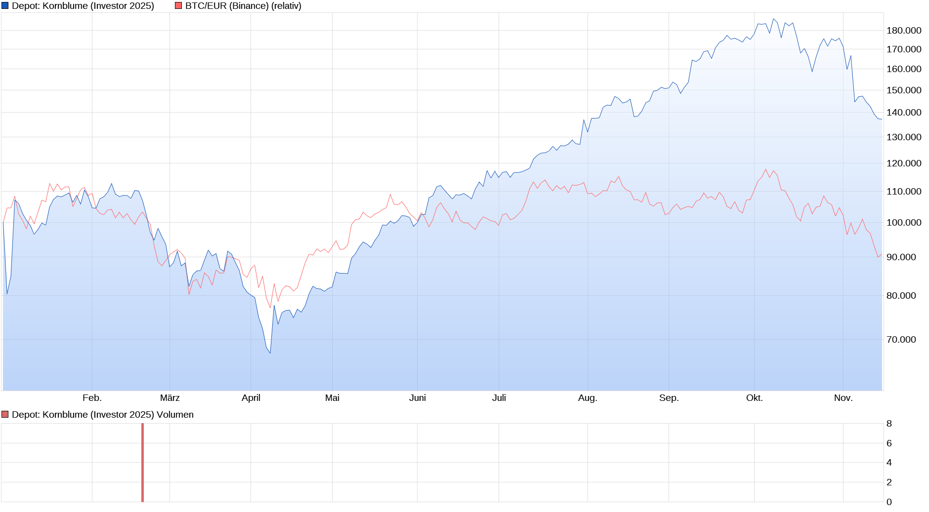 Damit verzeichnet Bitcoin auf Sicht von 30 Tagen ein Minus von rund 11,5 Prozent, bleibt im bisherigen Jahresverlauf aber mit einem Plus von 3,79 Prozent noch im grünen Bereich (Stand: 16. November 2025).