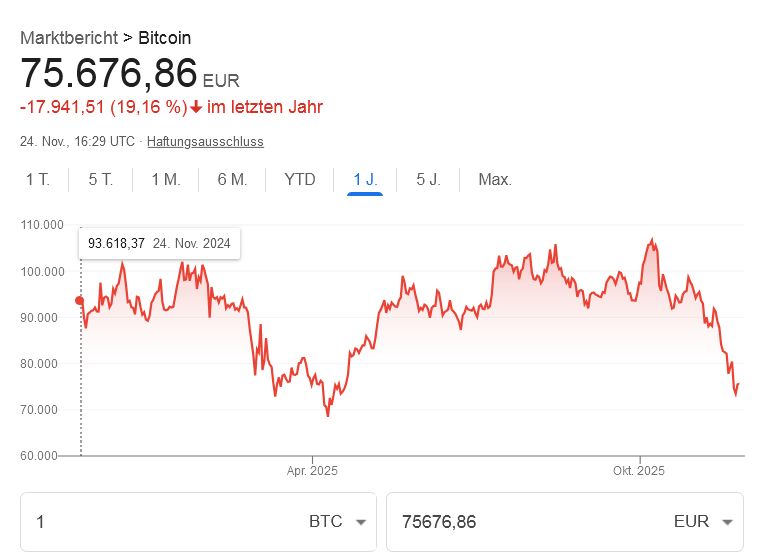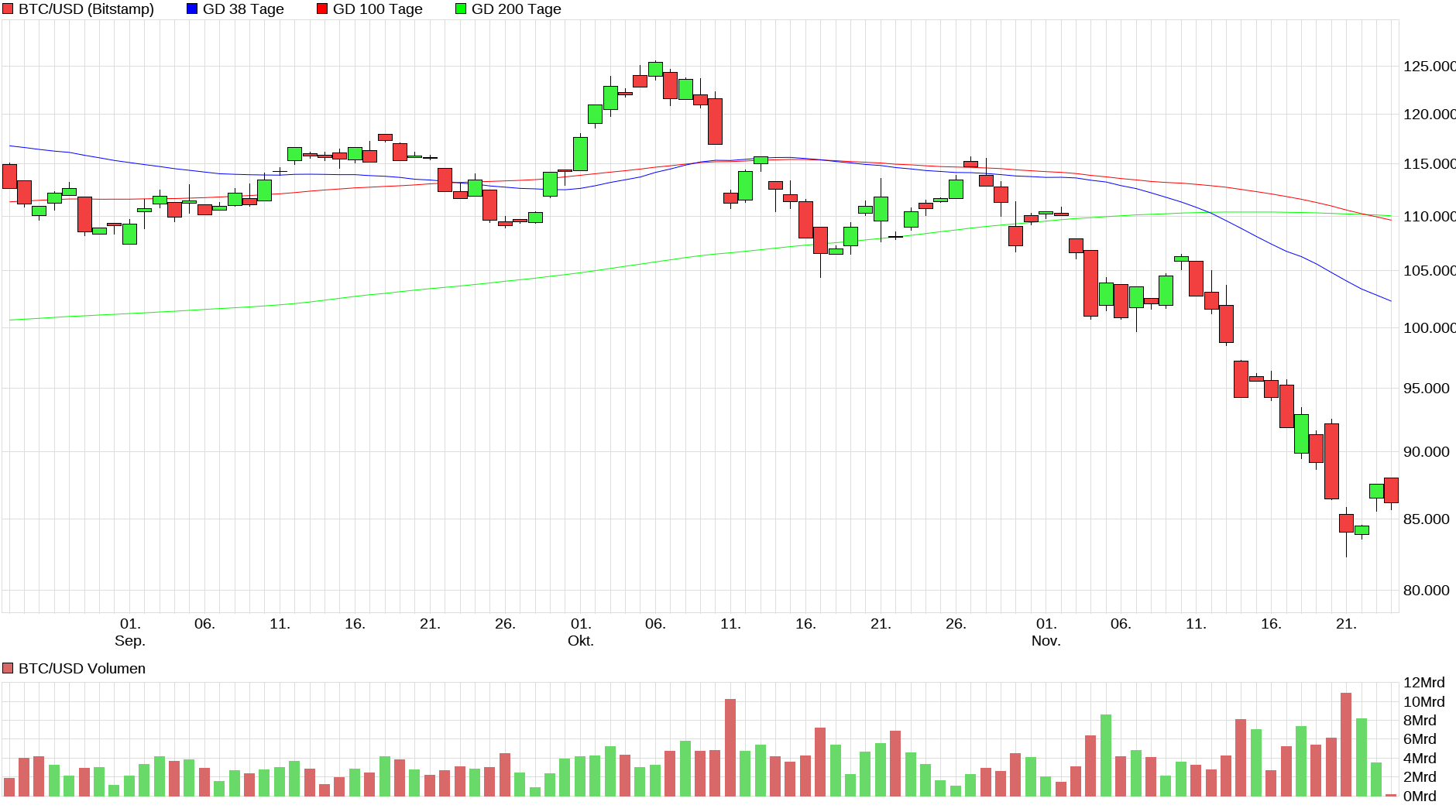 Bis Anfang Oktober war der Bitcoin noch im Höhenflug und hatte ein Rekordhoch bei etwa 126.000 Dollar erreicht. Analyst Timo Emden von Emden Research wollte allerdings nach der Korrektur weitere Kursverluste beim Bitcoin nicht ausschließen. "Makroökonomische Risiken und die erhöhte Volatilität könnten erneut zu einem Stimmungsumschwung führen", warnte er.