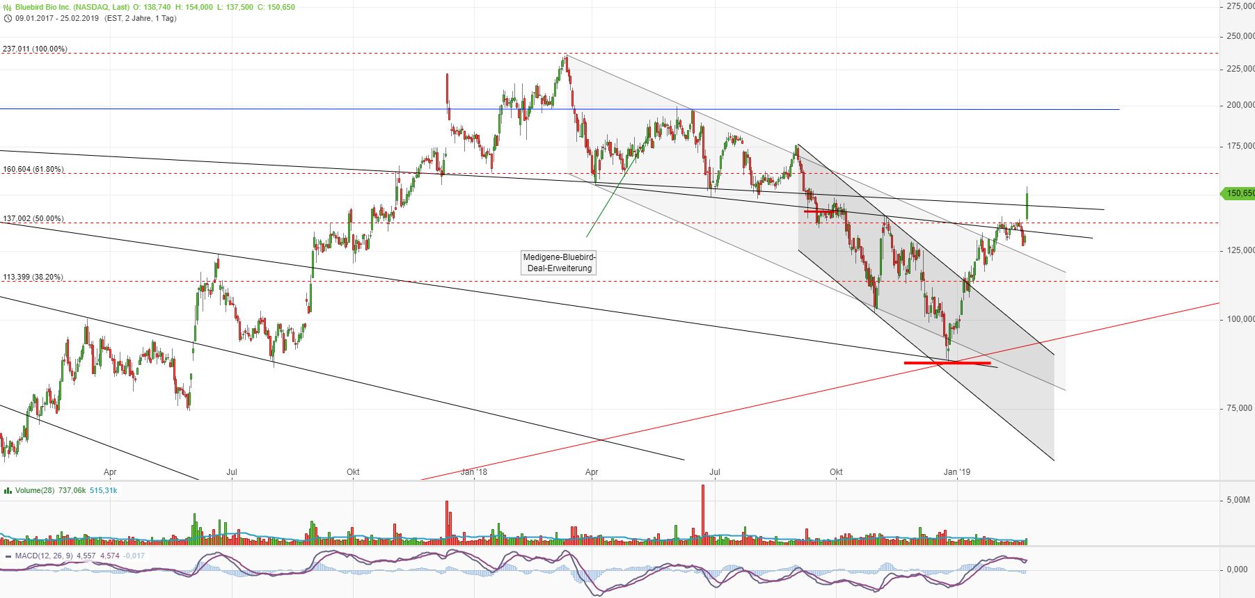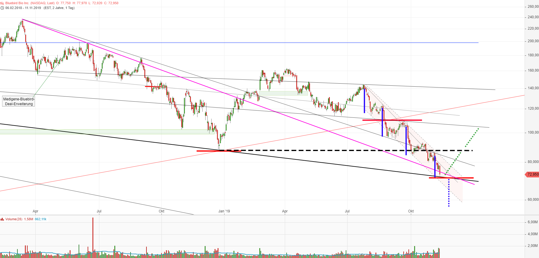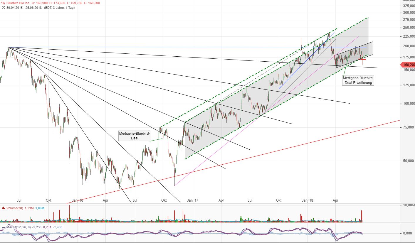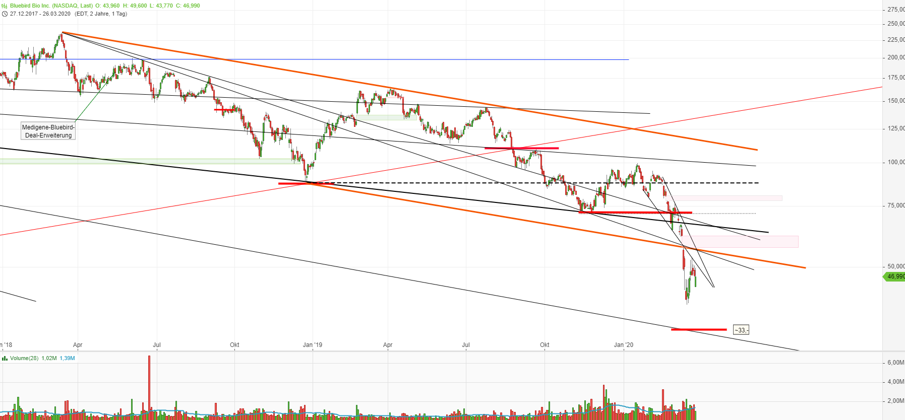 Zyneglio-Zulassung verzögert sich weiter... "..bluebird: The company’s EU-approved beta-thalassemia gene-therapy Zynteglo is set to suffer another delay in the United States. Last month, Cambridge, Massachusetts-based bluebird said it expected to complete its US application to market the beta-thalassemia treatment in the United States only by the second half of this year, versus its previous estimate of the first half of 2020, due to the FDA asking for additional “information regarding various release assays.” Now, in the context of the ongoing pandemic, the company on Thursday said it “does not anticipate completing the rolling BLA submission for LentiGlobin for β-thalassemia until mid-2021..” https://endpts.com/...pandemic-regeneron-relaxes-eylea-payment-terms/ - Chart; |