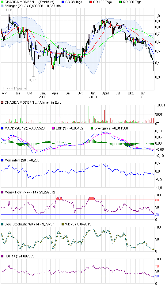 Hongkong 19.06.03 Chinas Landwirtschaftsunternehmen Chaoda Modern Agr. (0682/ KYG2046Q1073) teilte mit, dass Kailey Investment, Hauptaktionär, gestern 60 Mill. Anteile (3,13 %) an die Value Partners Ltd. zu einem Kurstand von 0,88 HK-$ verkauft hat was ein Diskont von 2,2 % ausmacht. Wie es aussieht, sind die Aktienbesitzstrukturen bisher recht undurchsichtig. Die Transaktion verschaffte der Aktie von Chaoda heute einen Kursschub. Zur Mittagspause steht die Aktie mit einem Plus von 28,6 % bei 1,170 HK-$.
