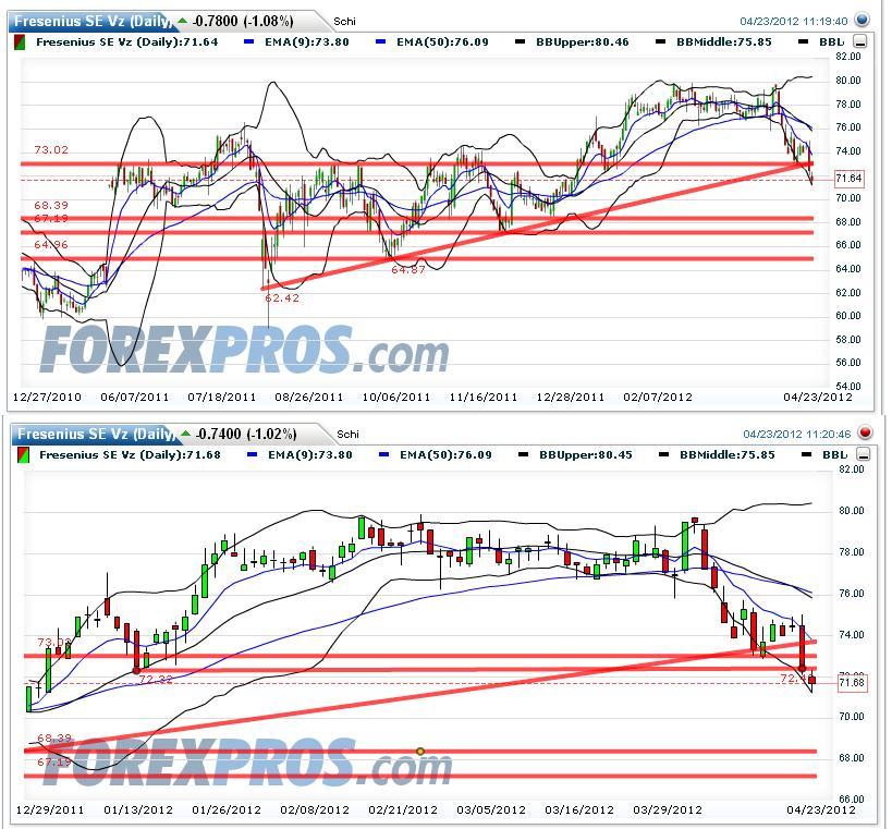 Montag (23.) Fresenius short gegangen mit SL 73.