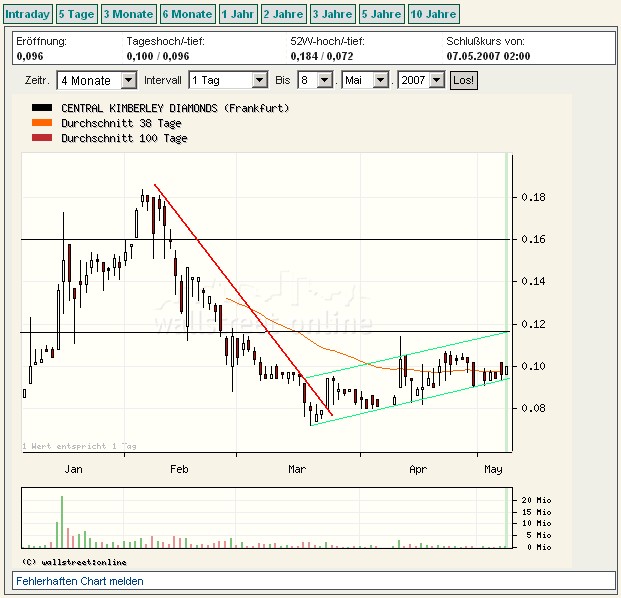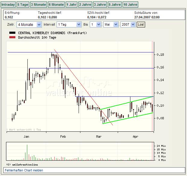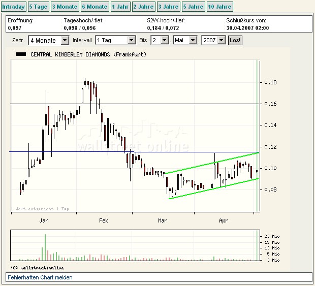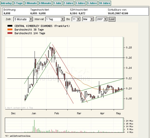West Perth, 02. Mai 2007 - Der australische Juniorexplorer Central Kimberley Diamonds Ltd hat heute bekannt gegeben, die Lizenzen zur Exploration in Postmasburg und Middelwater unterzeichnet zu haben und vom südafrikanischen Staat die Mineralrechte für Diamanten erhalten zu haben.
