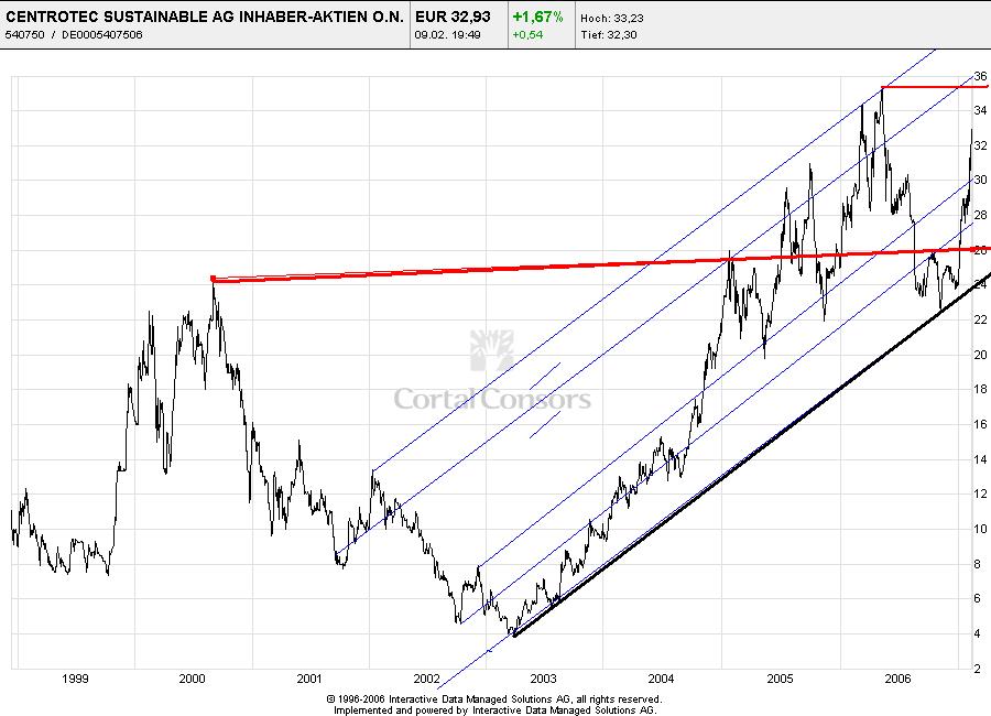 Die Aktie von CENTROTEC schloss gestern bei 29,60 Euro (+0,34 Prozent). (22.03.2007/ac/n/nw)
