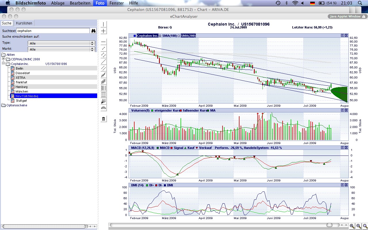 Cephalon ist mir erstmals aufgefallen, weil sie das Börsentief Ende 2008 vergleichsweise gut weggesteckt hatten -- sie schaffte es im Oktober 08 quasi auf Jahreshoch zu notieren.