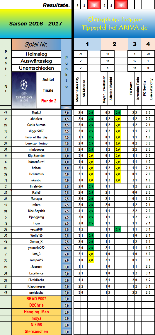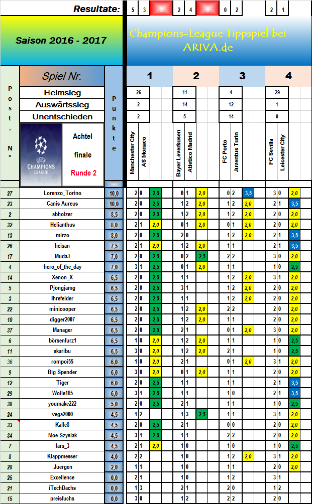 der wohl schon im Europa-League Tippspiel eingetragen war hat sich entschlossen nun auch unserer "Champions-League-Runde" beizutreten. Ein herzliches Willkommen und noch viele Punkte wünscht das Admin-Team.