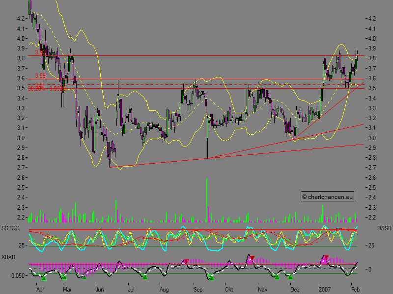 Am 5. Januar hätten die Experten beim Kurs von 3,70 EUR geschrieben: "Die Aktie zog nach dem Ausbruch über die 3,35er Marke in den vergangenen Tagen deutlich an. Aktuell überwindet sie sogar den Widerstand bei 3,60 EUR. Wird dieser Ausbruch per Tagesschluss verteidigt, ist alsbald mit dem Erreichen der 3,91er Marke zu rechnen." Die Aktie habe dieses Kursziel nun planmäßig erfüllt. Die Experten würden bullisch gestimmt bleiben und alsbald mit einem Ausbruch über den Widerstand bei 3,90 EUR rechnen, welcher eine Fortsetzung der Aufwärtsbewegung auslösen sollte.
