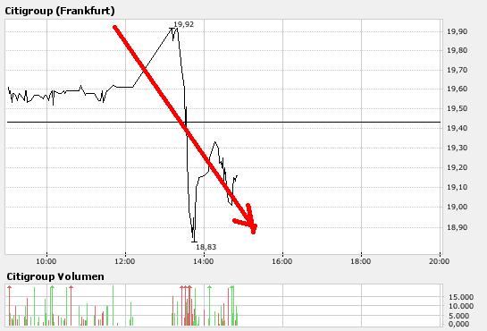 Irgendwann wird Ambac 20% oder 30% anbieten, und niemand kauft das Papier. Und dann fällt die Kalkulation zusammen wie ein Kartenhaus und Citigroup muss die entsprechenden Immobilienderivate abschreiben. Doch solange Ratingagenturen das AAA stehen lassen, kann Citigroup niemandem gegenüber begründen, dass es aus Vorsicht die gesamten Immobilienderivate aus den Büchern löscht. Das geht nicht.