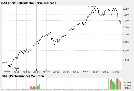 Bleibt die Unbekannte "Subprime Krise" die bisher 150 Mrd. $ vernichtet hat und es könnten bis zu 500 Mrd. $ werden. Die USA haben die ungedeckten Kredite geschickt auf der ganzen Welt verteilt. Falls die Jahresbilanzen für 2007 keine Klarheit schaffen, müssen noch die Quartalsbilanzen 2008 herangezogen werden.