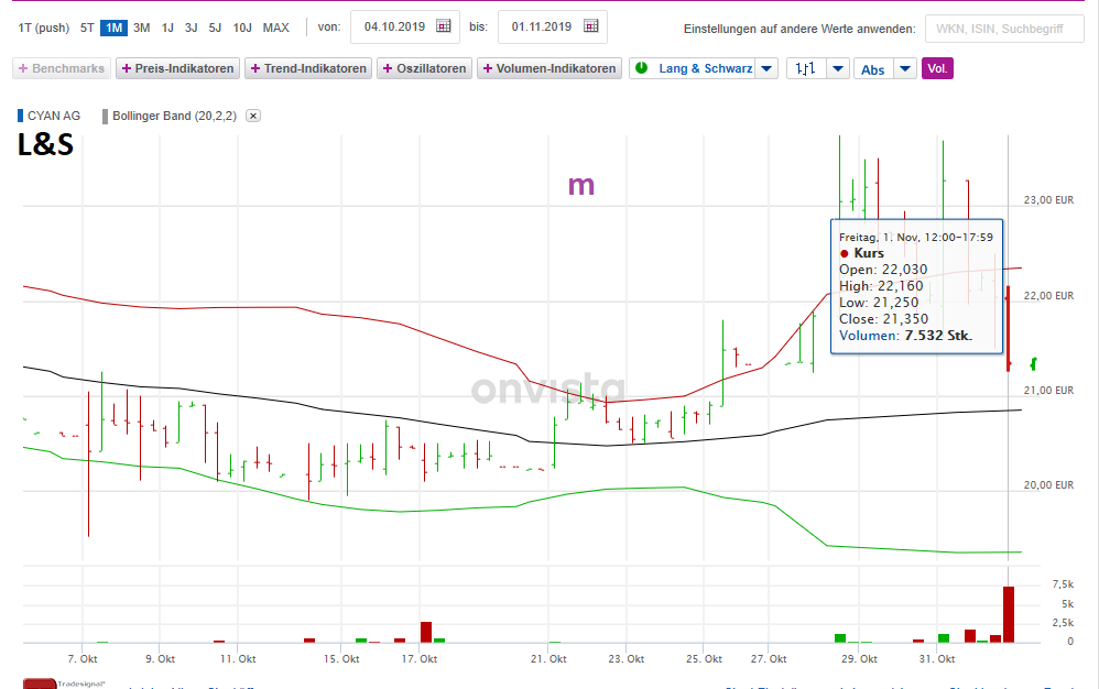 Ich hatte meine CYAN Position ja im Februar mit 40% Gewinn verkauft, weil mir klar war, dass dieses Getrommele auf den Roadshows nichts Gutes bedeutet. Nun bin ich mit Kaufschnitt 25€ wieder dabei.