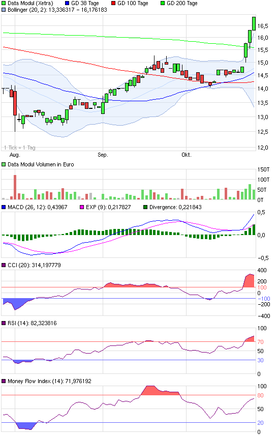 Deutschland§ Telefon: +49 (0)89 56017-105 Fax: +49 (0)89 56017-102 E-Mail: barbara.lederer@data-modul.com Internet: www.data-modul.com ISIN: DE0005498901 WKN: 549890 Börsen: Regulierter Markt in Frankfurt (Prime Standard), München; Freiverkehr in Berlin, Düsseldorf, Hamburg, Stuttgart