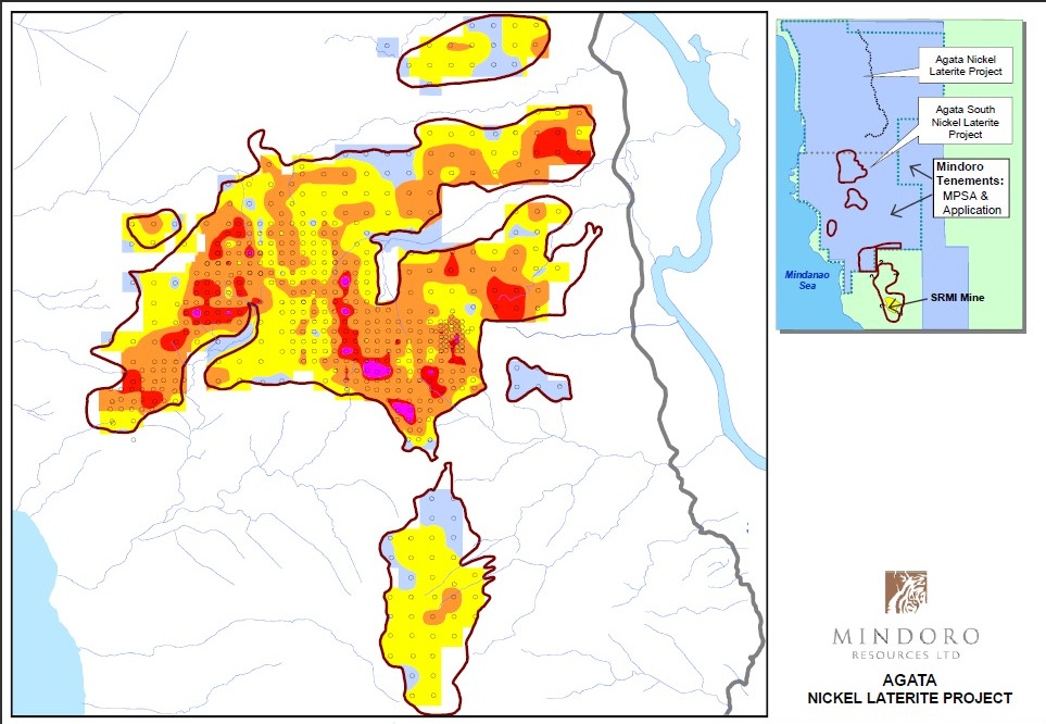 Mindoro hat im November 2009 NI 43-101-konforme Mineralressourcenschätzungen auf dem Nickel-Kobalt-Grundstück Agata North durchgeführt. Laut Schätzung birgt das Grundstück insgesamt 26,92 Millionen Tonnen (Trockengewicht) gemessene und angezeigte Ressourcen mit einem Gehalt von 1,11 % Nickel und 0,06 % Kobalt sowie 3,79 Millionen Tonnen (Trockengewicht) abgeleitete Ressourcen mit 1,06 % Nickel und 0,05 % Kobalt. Das Explorationsziel in der Region Surigao beträgt 50 bis 70 Millionen Tonnen (Trockengewicht) mit einem Nickelgehalt zwischen 0,9 % und 1,2 % (Januar 2010).