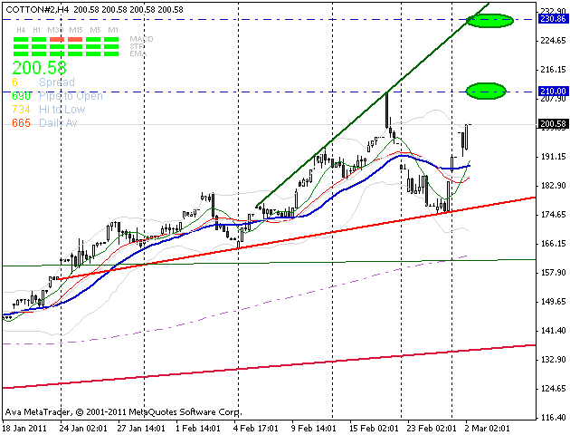 ...wäre ein guter Griff gewesen, wenn ich ein bißchen mehr Mut gehabt hätte. Hab meine ins Plus gelaufene Position zu eng abgesichert und bin sofort wieder ausgestoppt worden (siehe oben). Aber ich denke die Charttechnik können wir vergessen. Baumwolle wird massiv gekauft, wenn es positive Meldungen gibt (siehe US Daten vorgestern oder was Positives zu den Ägypten und Co.) und stark verkauft, wenn es runter geht mit den Indizes usw (siehe heute Abend). Ich hab leider keine Zeit den ganzen Tag am Rechner zu sitzen und hab vorhin per Zufall gesehen, dass Baumwolle nicht mehr 7 Cent im Plus ist. Hab schnell den Broker gestartet und sofort mit 0,1 Kontrakten short, ohne den voreingestellten minimum Stopplevel zu erhöhen. Das hat im Downmove dazu geführt, dass ich binnen 5 Sekunden 100€ im Plus und 50€ im Minus war. Der SL wurde dummerweise ausgelöst und ich bin hab mit -18Pkt die Position geschlossen. Schade, denn 5 Minuten später waren wir 200 Punkten weiter unten.
