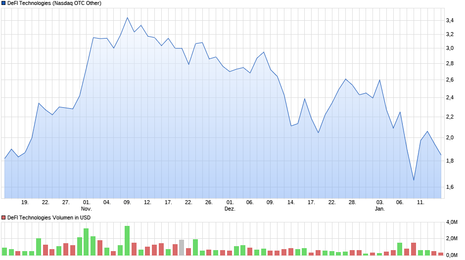 Das Ende des darauf folgenden Abwärtstrend wird in den höheren Zeiteinheiten, also der wöchentlichen oder monatlichen Darstellung mit hoffentlich wieder höheren Hochs erst dann angezeigt, wenn es zum billigen Einkauf von DEFI-Aktien vermutlich längs zu spät ist..