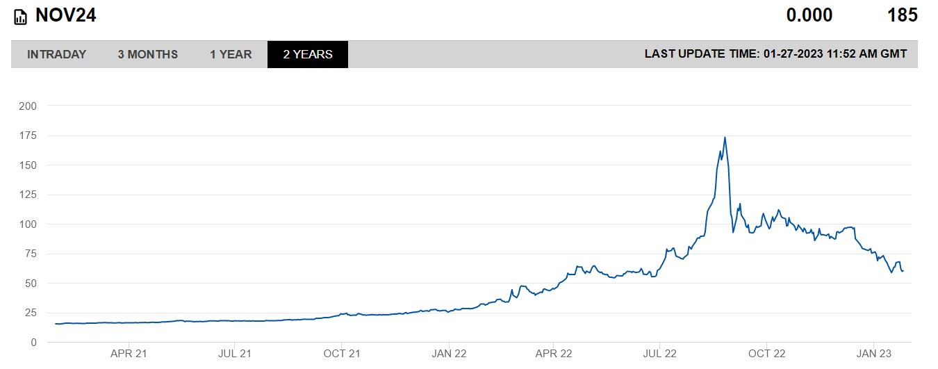 Fakt bleibt, dass die Gas-Preise für 2022 ja noch dadurch gestützt wurden, dass bis zum Spätsommer Russengas durch Nordstream floss.