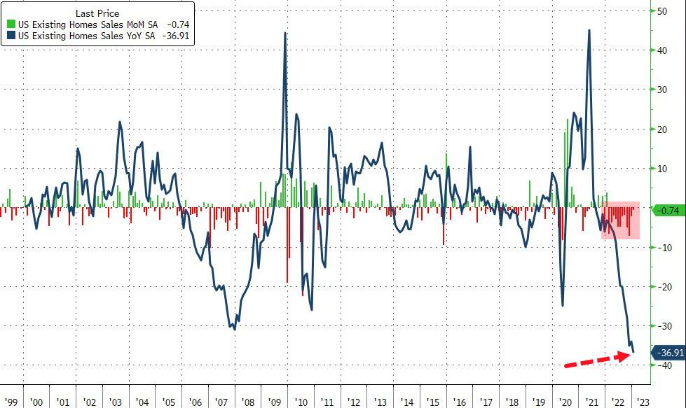 Better than expected PMIs didn't help as the 'no landing' narrative is now driving the market's reality ever more hawkish with expectations for the Terminal Rate now above 5.35%, and barely any rate-cuts priced in at all for 2023...