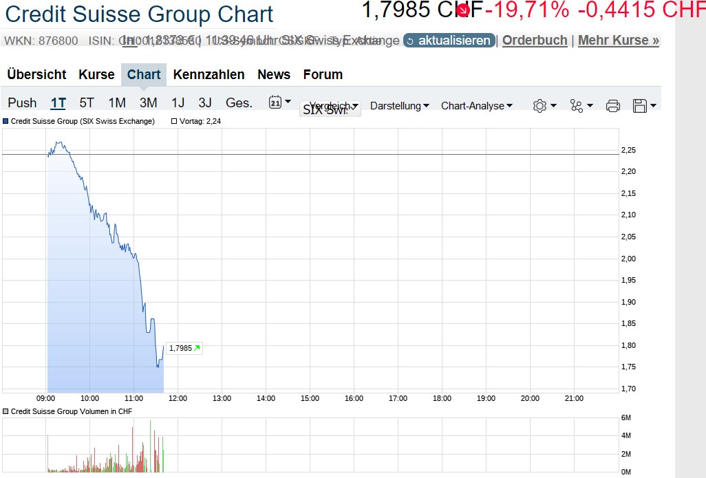 Heute, einen Tag nach dem Beinahe-Zusammenbruch zahlreicher kleinerer Banken inmitten einer Welle von Einlagenabflüssen, lesen wir, dass "nach dem Zusammenbruch dreier kleinerer Banken die US-Großbanken einen Ansturm von Einlegern erleben, die eine Ausweitung der Krise befürchten".