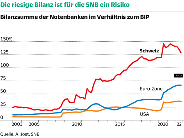 das wiederum bringt die nationalbank mit ins scheinwerferlicht, hat sie doch selber für letztes jahr 140 mrd buchverluste gemeldet (und deswegen wohl die vizechefin mächler verabschiedet). klar, eine nationalbank kann selber geld drucken, aber dennoch..