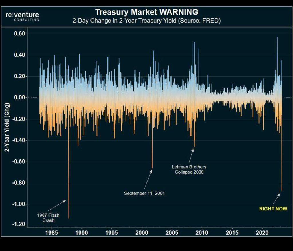 Im Klartext: Geschäftsbanken haben in der Niedrigzinsphase zu viele Anleihen auf ihre Bücher genommen, um Renditen zu erzielen. Dass diese Anleihen bei plötzlichen Zinserhöhungen (wie ab letztem Jahr) im Kurs absaufen und dadurch die Bankbilanzen in Schieflage bringen, hatten die Banken kaum berücksichtigt. Nur sehr wenige Banken haben einen Hedge gegen Zinsanstiege durchgeführt.