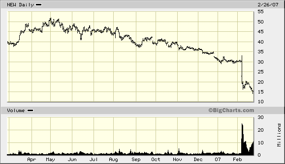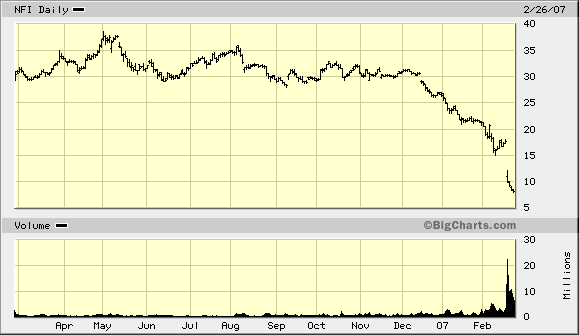 Seit Dezember fiel die Aktie des Subprime-Immobilien-Investment-Trust Novastar Fiancials (NFI) von 31 auf jetzt 8 Dollar.