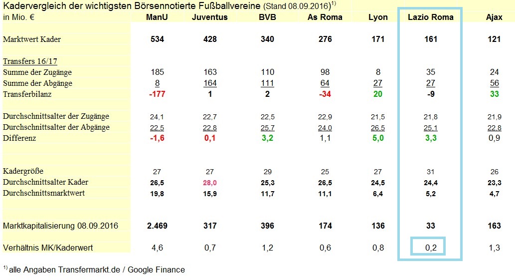 dei kostenstruktur ist offenbar aussert niedrig.. denn es ist nich so dass Lazio trotz wertvollem kader tiefrote zahlen schreibt