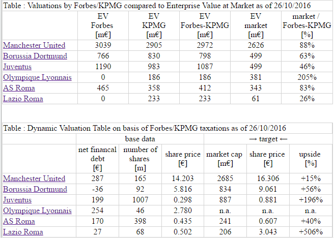 Lazio ist überschuldet - das Equity ging seit 2012 von EUR 84 auf 9 Mio. zurück - nicht so schlimm wie bei AS Rom, die haben laut Bilanz rund 100 Mio. negatives Equity - aber natürlich nicht zu vergleichen mit der extrem hohen EK-Quote vom BVB.