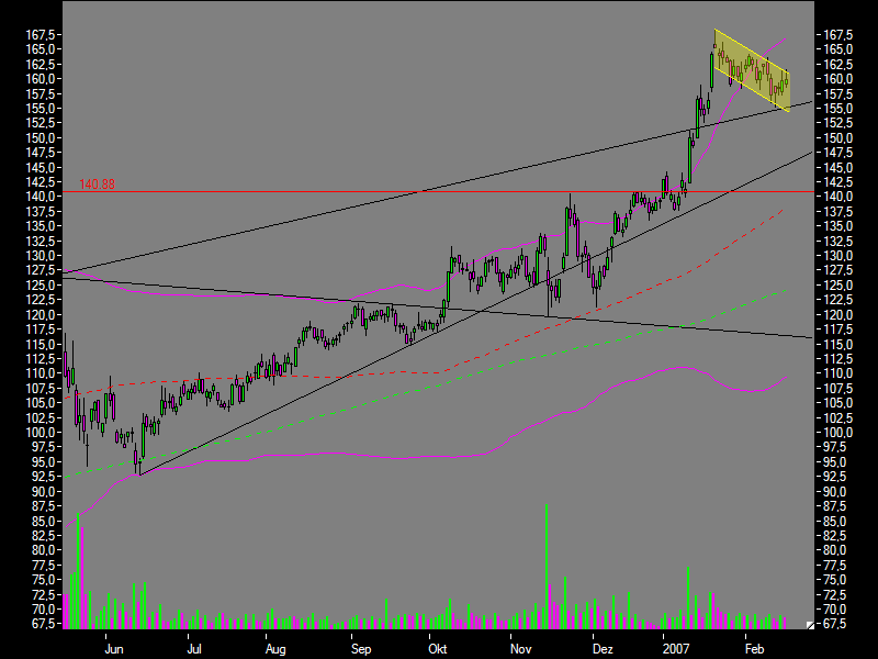 Aus rein fundamentalen Gesichtspunkten ist das Papier mit einem 2008er-KGV von 21 allerdings bereits mehr als ausreichend bewertet. Zudem ist die Aktie charttechnisch kurzfristig massiv überverkauft. Selbst trend-orientierte Anleger sollten daher einen Rücksetzer in den Bereich um 155 Euro vor einem Einstieg abwarten.