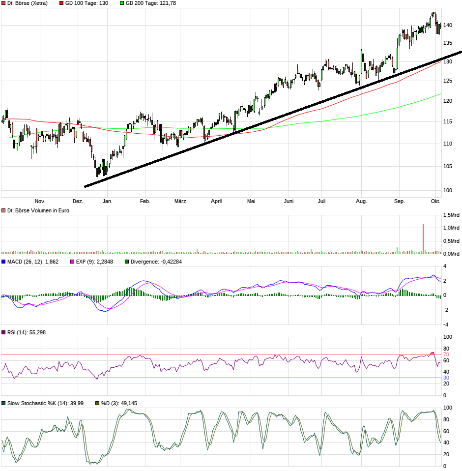 Sowas mag der Markt garnicht, auch wenn ja bislang nichts bewiesen ist und man die Ergebnisse erstmal abwarten muß, ob hier Verstrickungen vorliegen. Schade, denn der Kurs war ja kurz davor wieder das Mehrjahreshoch anzugreifen was man voir wenigen Wochen erzielt hatte. Hoffen wir mal es wird nichts nachgewiesen. Fakt ist aber auch, daß man sich aus technischer Sicht wieder zunehmend in eine überkaufte Situation bewegt, wenn man sich dem MACD im Weekly anschaut. Entsprechend steigt hier natürlich auch das Konsolidierungsriskio. So wäre z.B. auch vorstellbar nochmal Richtung 120 zu laufen, falls man die Kurse um 133 doch so schnell nicht nochmal anlaufen sollte.